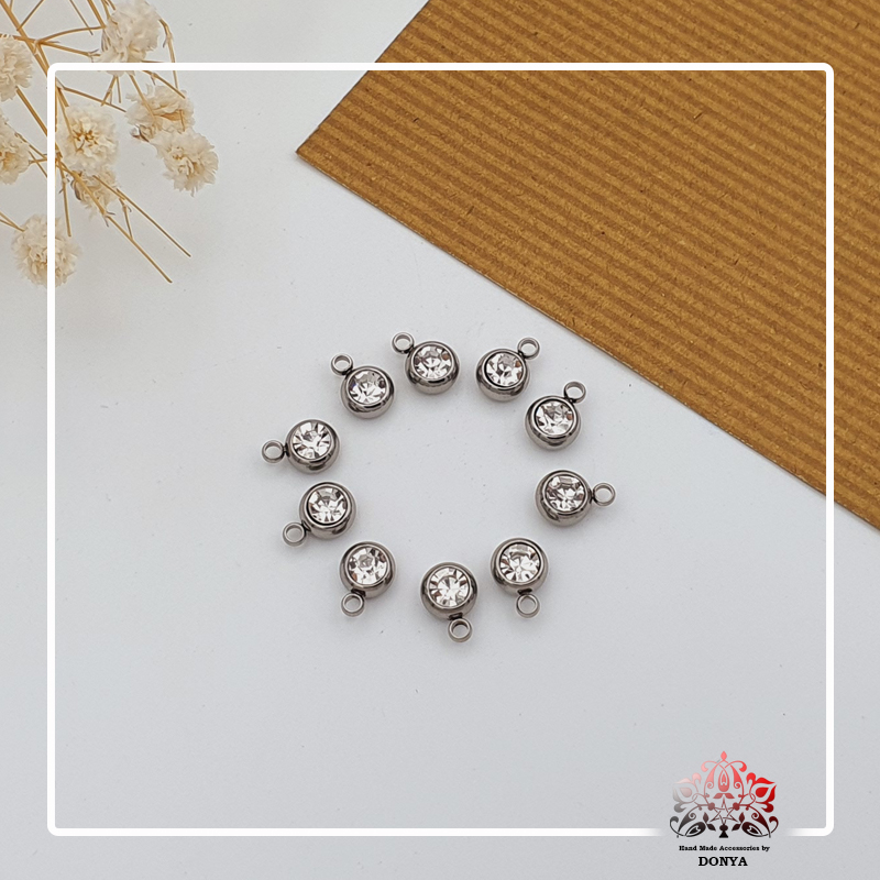 آویز ساعتی ظریف با مخراج کاری نگین اتمی به رنگ نقره ای و کیفیت آبکاری بالا