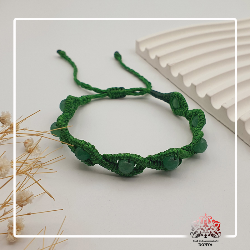 دستبند میکرومکرومه سبز رنگ با بند کشویی قابل تنظیم برای هر سایز مچ دست