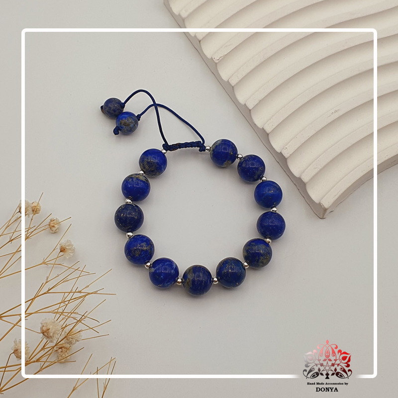 دستبند بافت کشویی قابل تنظیم سنگ لاجورد سایز 10 همراه با خرج کار استیل