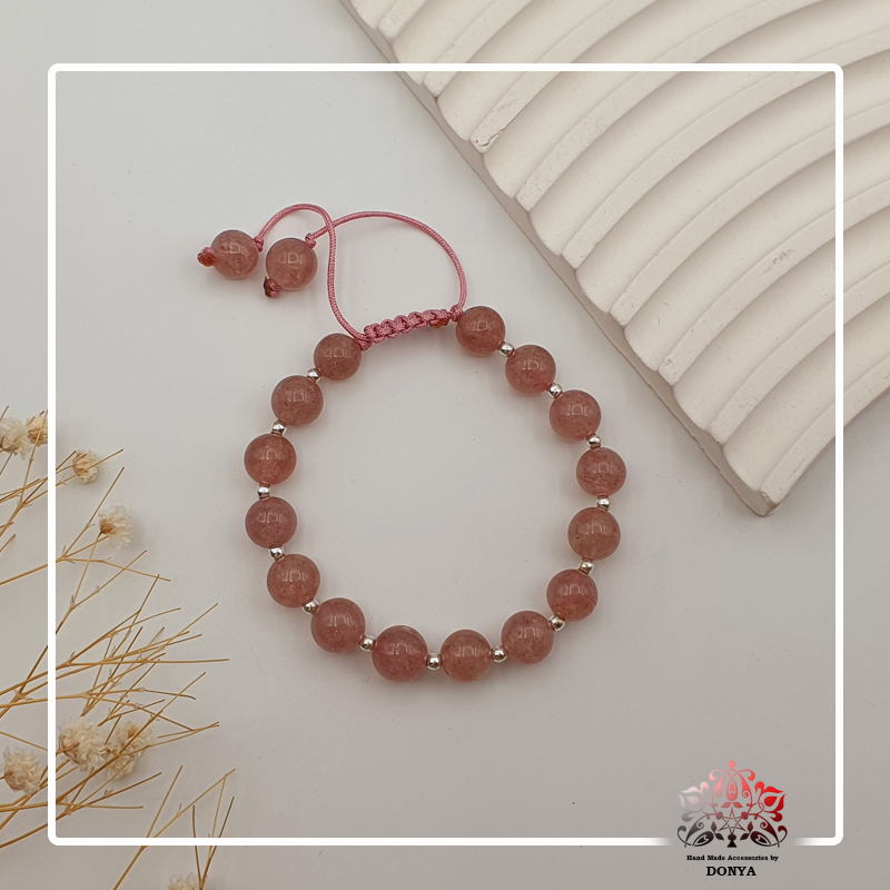 دستبند بافت کشویی قابل تنظیم سنگ چری کوارتز همراه با خرج کار حدید