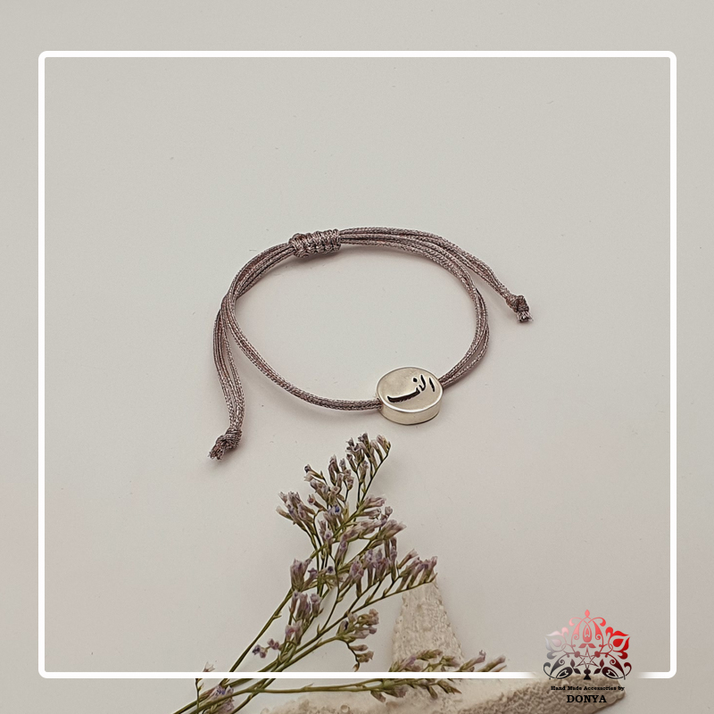 دستبند پلاک حرف الف نقره عیار 925 همراه با بافت لمه