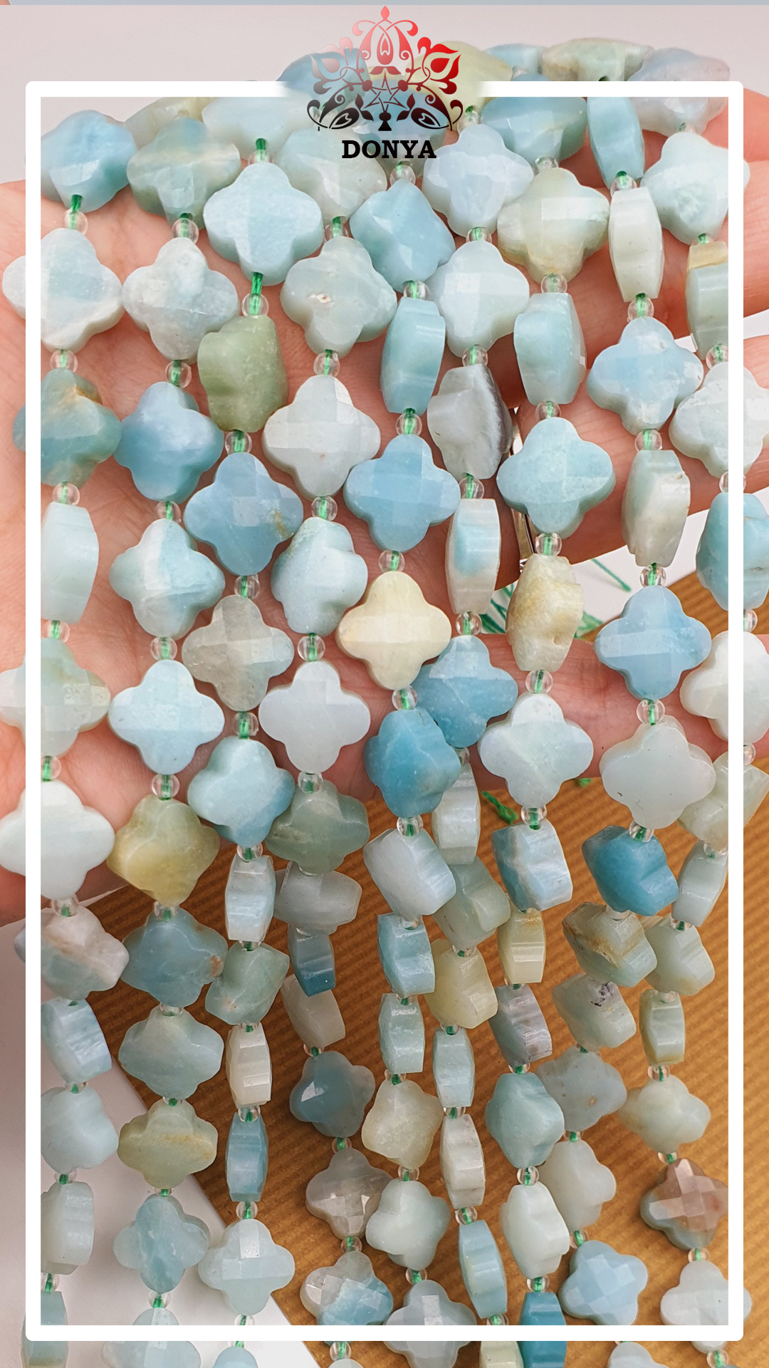 ریسه سنگ آمازونیت با تراش چهارپر یا ونکلیف که بر روی مهره ها نیز مجدد تراش خورده است