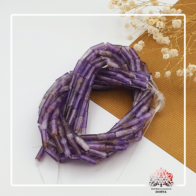 ریسه سنگ آمیتیسیت با تراش زیبا و متفاوت استوانه ای در ابعاد 13 در 4 میلیمتر
