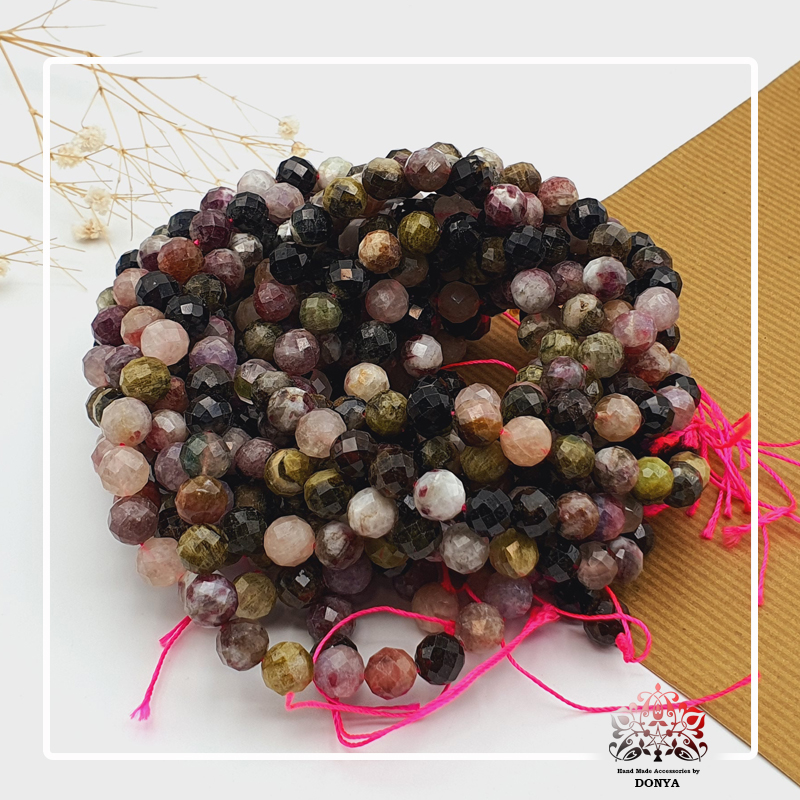 ریسه سنگ تورمالین هندونه ای نیوزیلند سایز 8 کیفیت بالا با تراش جواهری