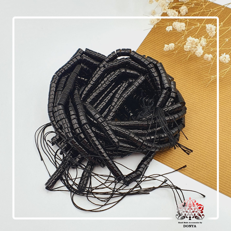 ریسه سنگ عقیق مشکی با تراش رینیگ یا تایر در ابعاد 6 در 3 میلیمتر