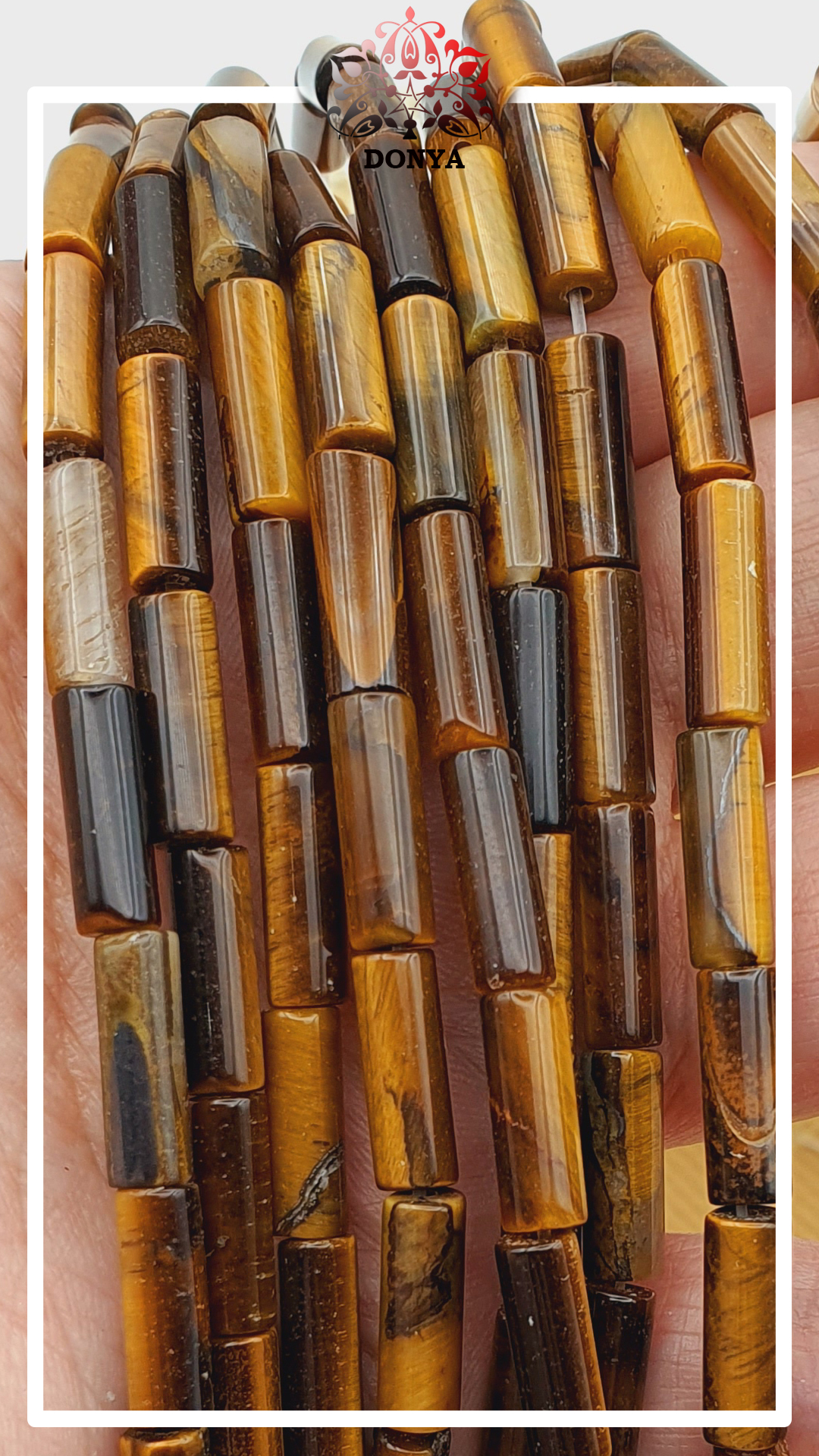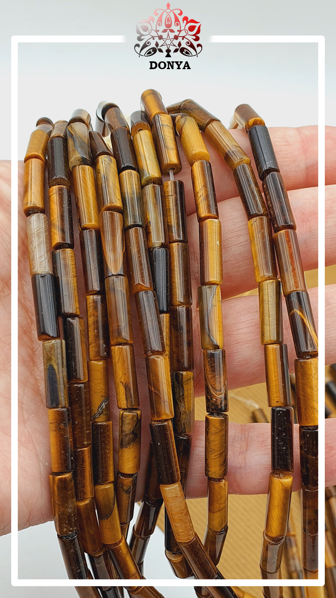 ریسه سنگ چشم ببر قهوه ای با تراش زیبا و متفاوت استوانه ای در ابعاد 13 در 4 میلیمتر