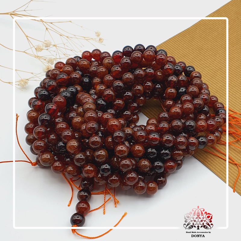 ریسه سنگ کیفیت بالای گارنت پرتقالی مالاوی سایز 8 با تراش کروی