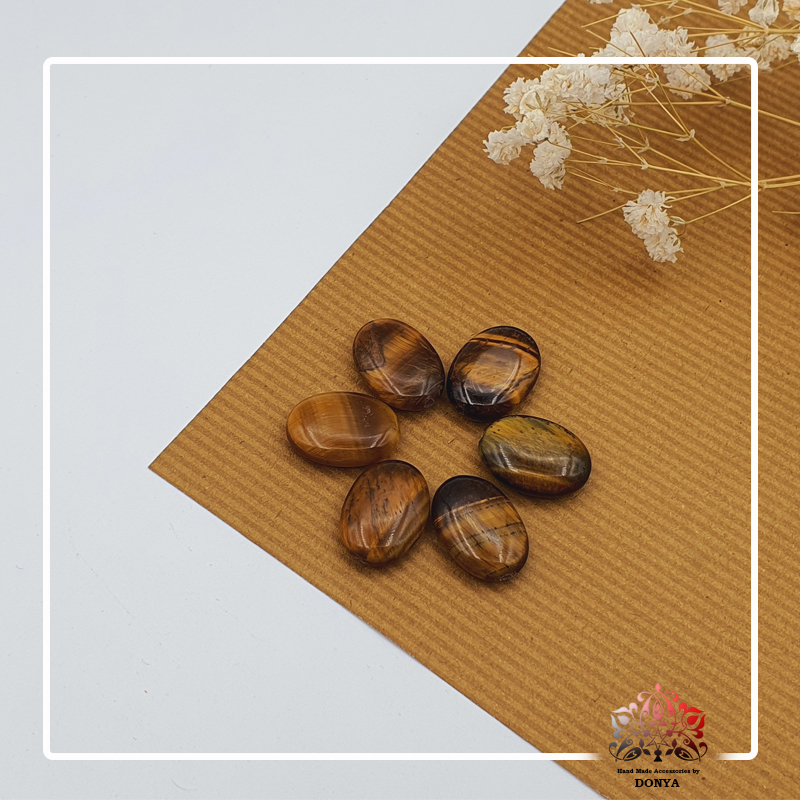 سنگ میانکاری چشم ببر قهوه ای تراش زیبای بیضی شکل