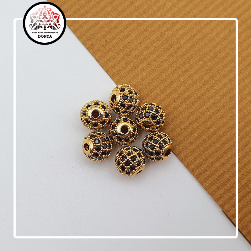گوی نگین دار معروف به گوی سواروسکی به رنگ طلایی رزگلد با نگین های مشکی در سایزهای شش، هشت و ده میلیمتر